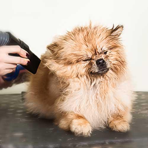 Full-service grooming for dogs and cats, including shampoo, toothbrushing, nail trimming, and de-matting.